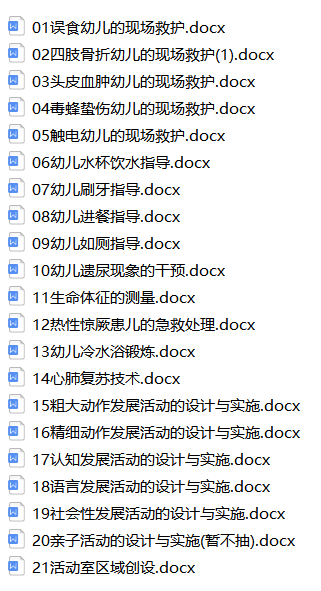 幼儿照护职业技能等级考评采用综合评价方式,综合评价按各等级的要求,以网络考核(客观试题)+实操考核的方式进行评价。其中客观试题为在2800道题库中随机形成一套试题,中级技能实操考核在如下21个考核点试题中最终选取两套,备考期间需进行大量的课程学习,课程内容涵盖早期发展指导、生活照料、日常保健、安全防护等相关内容。