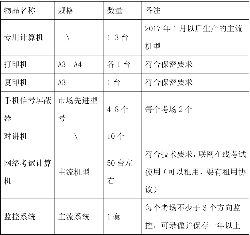 考场及工位:按照考试计划要求配置所需要的考场及工位。根据考生数量确定工位数量。
