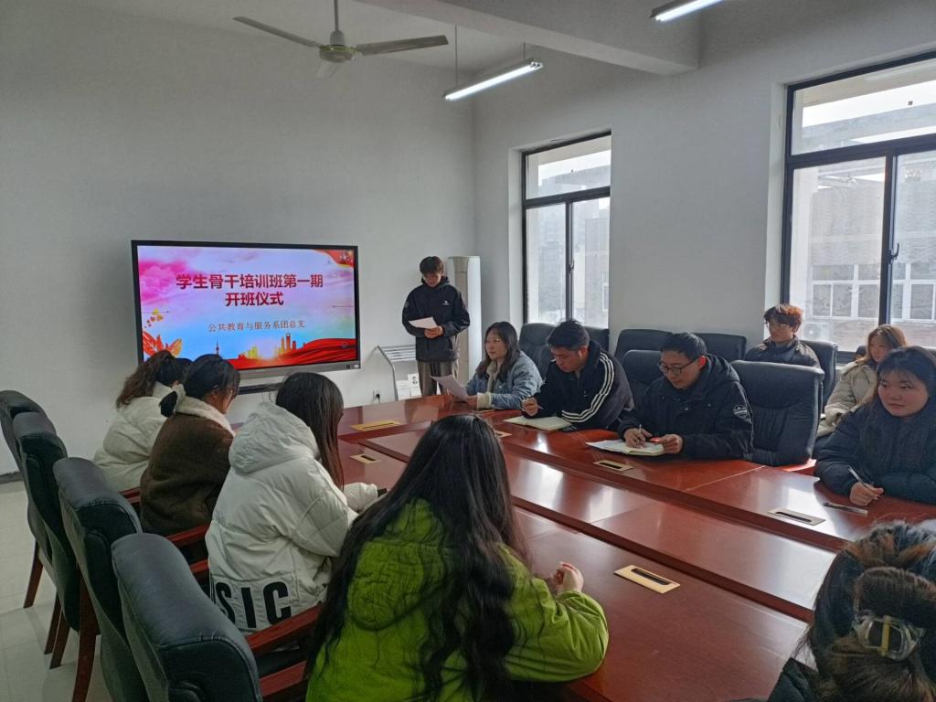 1月3日,在学院槽郢校区2号教学楼404室,公共教育与服务系第一期学生骨干培训班开班仪式圆满举行。系党总支副书记宋邦林、团总支书记钱金戈和32名学员参加开班仪式。