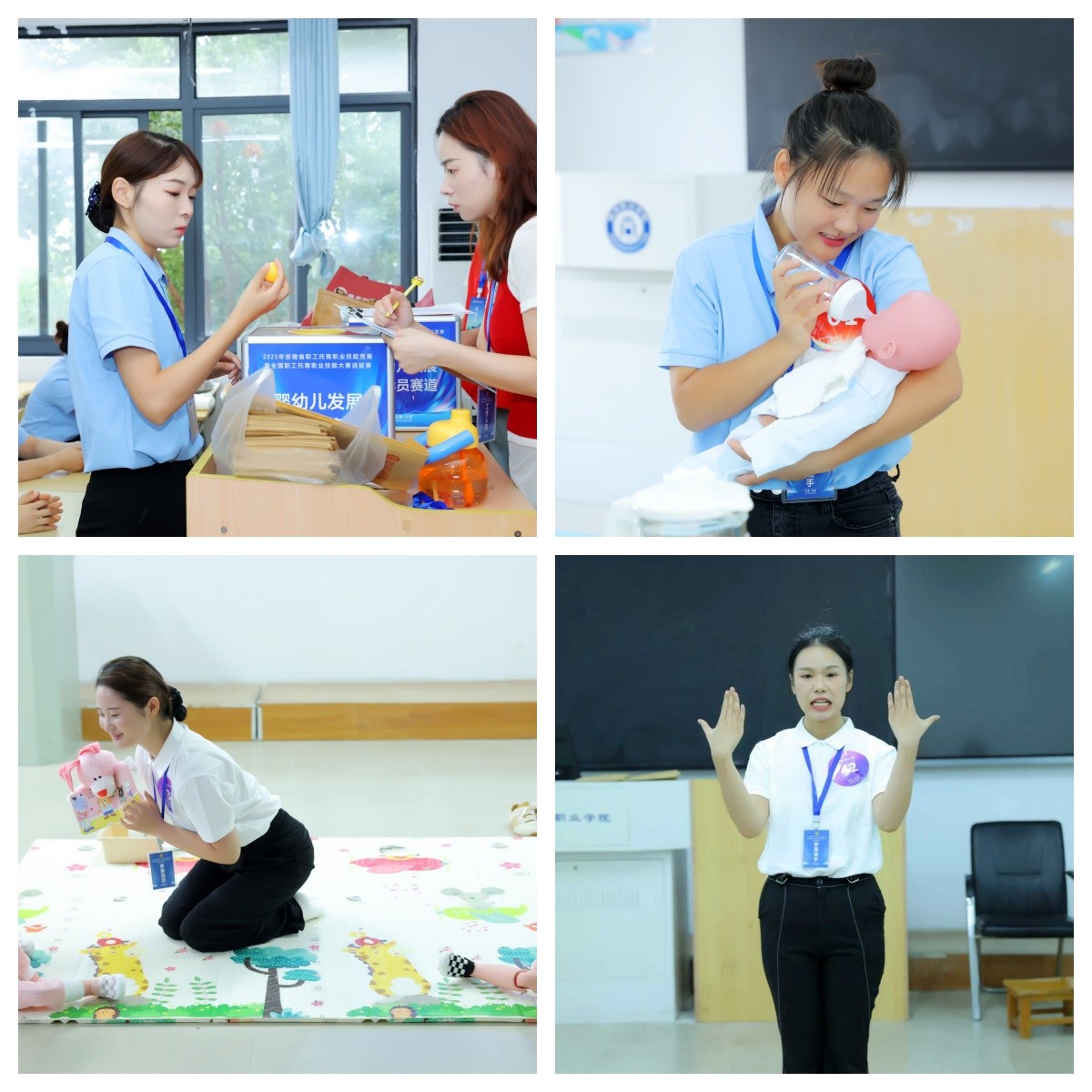 9月18日至20日,全省职工托育职业技能大赛在学校成功举办。本次大赛由安徽省总工会、安徽省卫生健康委员会、安徽省妇女联合会、安徽省计划生育协会主办,来自全省16个地市、32支队伍、160人参加比赛,充分展示安徽托育人的精神风貌和职业技能。