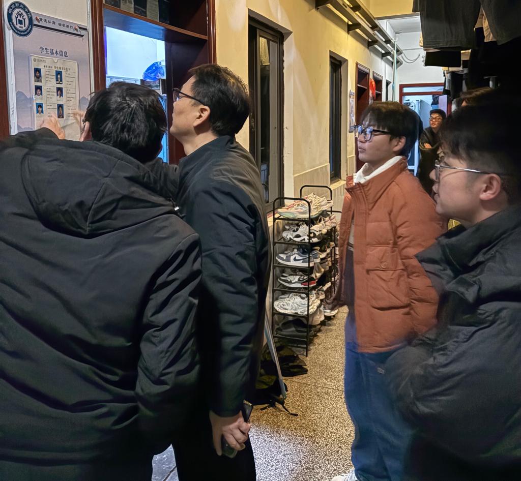 晚餐后,吴红星一行又走访了部分学生宿舍。细致查看宿舍的卫生环境、安全设施,关心同学们的住宿条件是否舒适便利,是否存在实际困难。在与同学们的交谈中,关切地询问大家的学习进展、课余生活、宿舍人际关系等,鼓励同学们要营造积极向上、团结互助、整洁文明的宿舍文化,把宿舍建设成温馨的“小家”。亲切的问候、细致的关怀,让同学们倍感温暖和鼓舞。