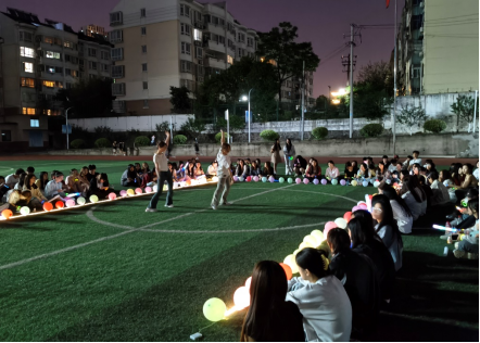 傍晚,草坪上灯光渐次亮起,热闹的氛围迅速蔓延。24501班杨婷姿与夏文溪以一支古典舞《流水桃花》惊艳开场,随后,于佳慧带来的经典歌曲《江南》,温柔嗓音搭配舒缓旋律,诉说着江南烟雨的朦胧情思。