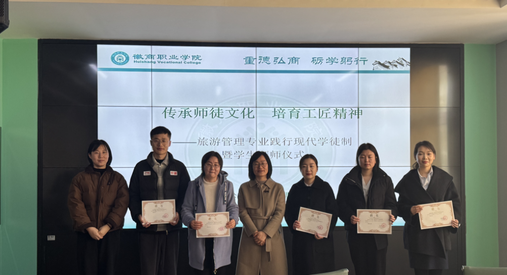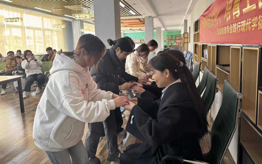 1月6日下午,公共教育与服务系2023级和2024级旅游管理专业同学在学院槽郢校区大学生双创中心参加主题为“传承师徒文化,培育工匠精神”的现代学徒制暨学生拜师仪式。