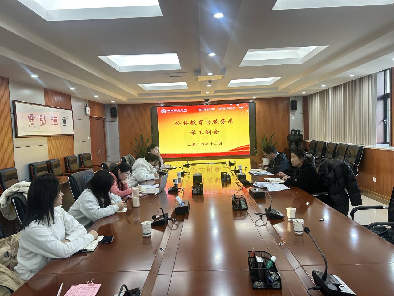 12月18日,公共教育与服务系在紫蓬校区图文信息中心四楼第三会议室召开学工例会,布置近期学生工作。系党总支书记许花,系党总支副书记宋邦林及全体专兼职辅导员参加会议,会议由宋邦林主持。