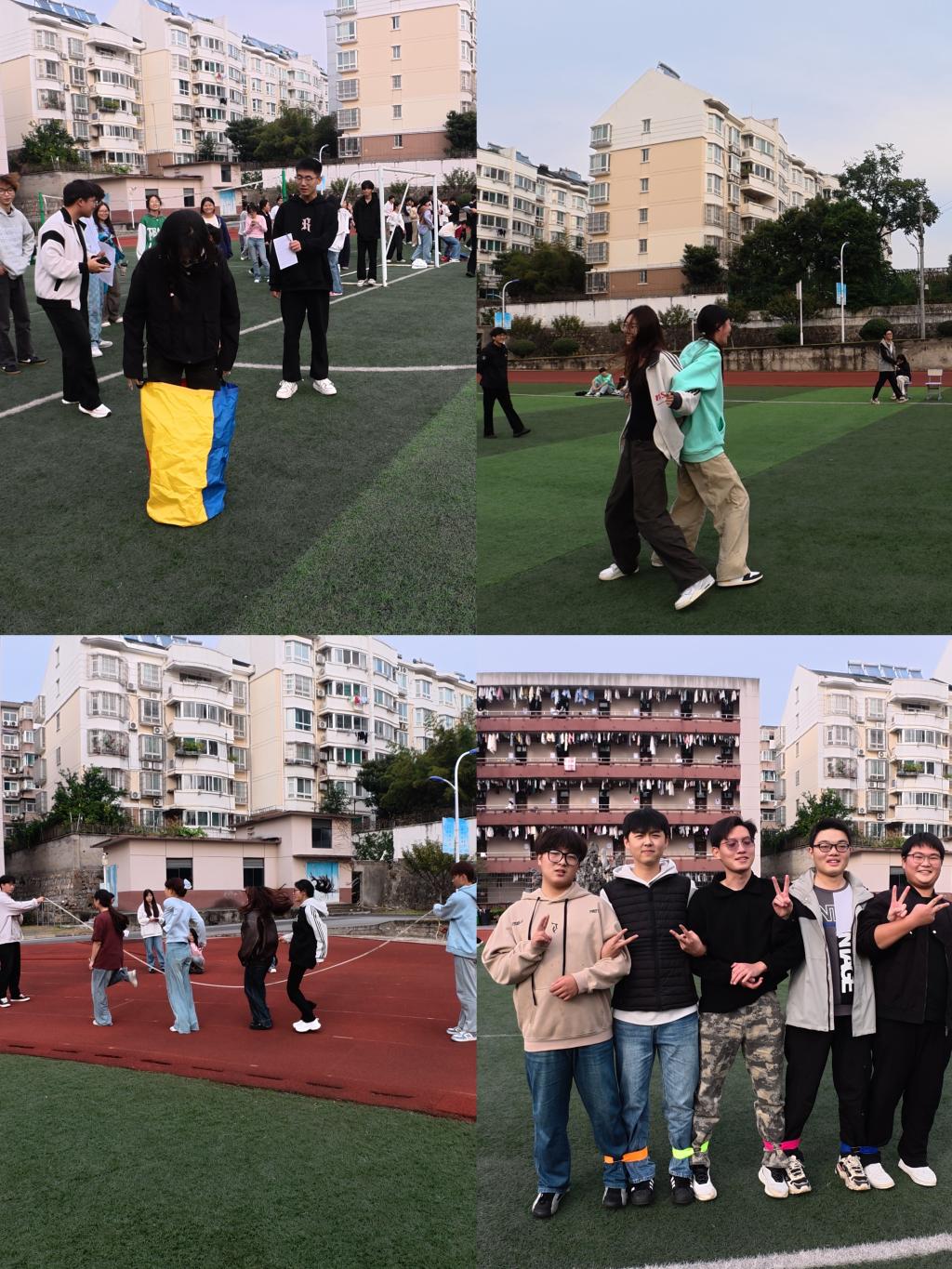 全院共有11支队伍参加了此次活动,以团队协作之名携手竞技,共度韵味十足的重阳佳节。本次运动会以“协作共赢”为核心,精心设置了“抢椅子大赛”“袋鼠接力跳”“五人六足”“背对背拥抱”“跳大绳”“你画我猜”等六大趣味项目。既富娱乐性又重协作力,让学子在比赛中感受团队力量。赛场上,各队伍斗志昂扬、配合默契,或紧盯座椅灵活卡位,或套袋蹦跳稳步接力,或齐声喊拍齐步奋进,每一个青春身影都活力满满,每一处赛场都回荡着欢呼与欢笑。